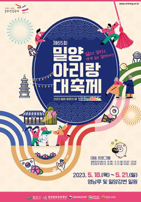 경제성장의 동기를 보여하고자 시작된 축제입니다. 2007년과 2008년에 경상남도 우수문화축제로 지정되었습니다. 2017년 5월에는 문화체육관광부에서 선정한 유망 축제로 선정되었습니다. 그 이후 2018년 부터 2022년까지 정부에서 지정한 문화관광축제로 선정되었습니다. 축제의 현황에 대해서 알아보겠습니다. 2018년 제60회 밀양 아리랑대축제에서는 더할 나위 없이 최고의 경치를 자랑하는 밀양의 영남루와 밀양강이라는 역사를 주제로 실경 멀티미디어쇼가 진행되었습니다. 밀양강오디세이라는 쇼가 밀양강오디세이 공연장에서 이루어졌습니다. 야외 공연장에서는 국가적이고 문화적인 자산인 대한민국의 아리랑을 널리 알렸습니다. 전승과 보급을 위해 전국의 아리랑과 여러 가지 장르의 합동 공연인 국민 대통합 아리랑 공연이 펼쳐졌습니다. 이러한 공연과 함께 밀양아리랑대축제의 유명한 3명의 인물이 함께 했습니다. 임유정, 김종직, 아랑 낭자 세분이 함께 퍼레이드를 하였습니다. 이 분들과 함께하는 역사맞이 거리 퍼레이드가 진마트 오거리에서 시작하여 서막식장까지 진행되었습니다. 여러 이유로 2020년과 2021년에는 사회적 거리 두기로 인해 행사가 취소되기도 하였습니다. 하지만 2022년에 제64회 밀양아리랑대축제가 날씨 좋은 가을인 9월에 열렸습니다. 밀양 영남루와 밀양강 근처와 남천강변로 부근에서 개최되었습니다.